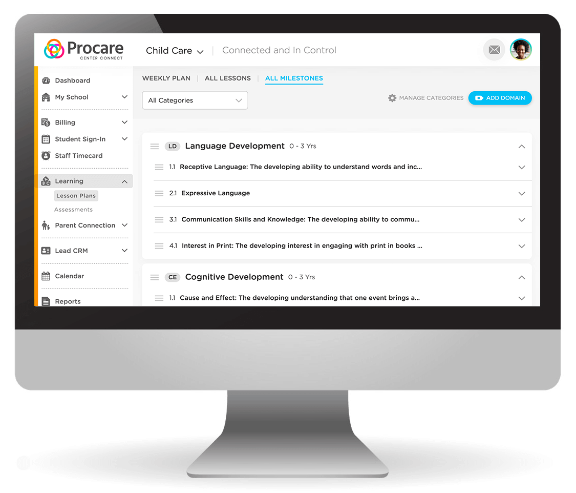 Staying aligned with early learning frameworks is easy through Procare’s pre-loaded standards for all 50 states.