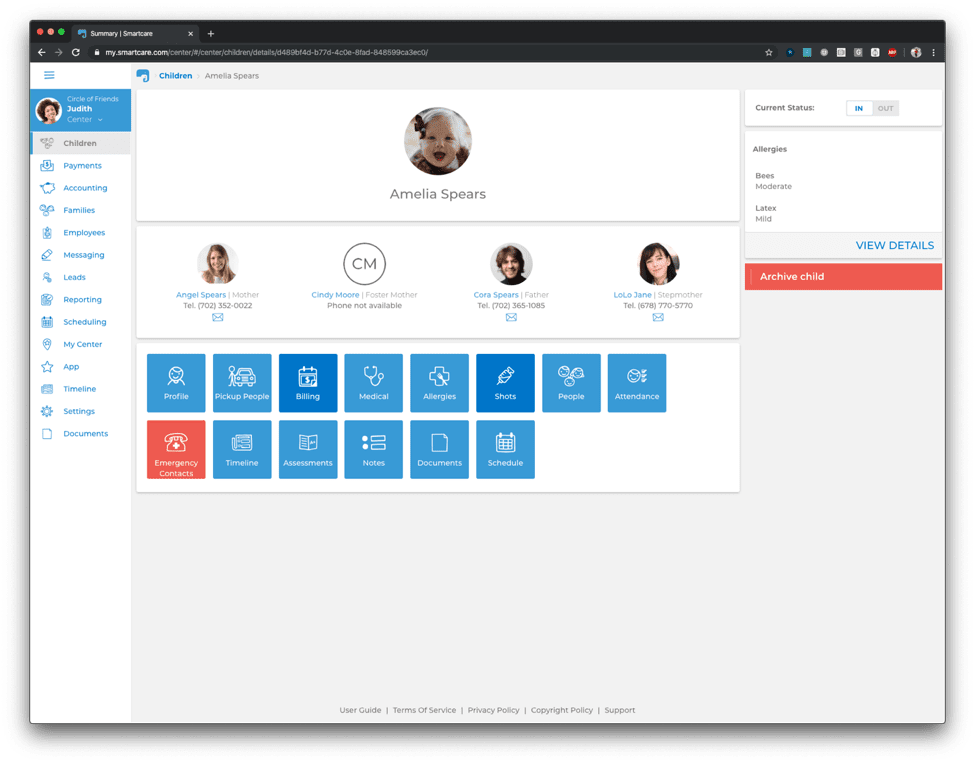 - Manage all your child and family records in one place and have access to it on any computer or mobile device, anywhere. Information includes pickup people, physicals, allergies and treatment plans, immunizations, attendance records, billing history, notes, documents, schedule as well as custom fields and tags to track children and families the way you run your center.